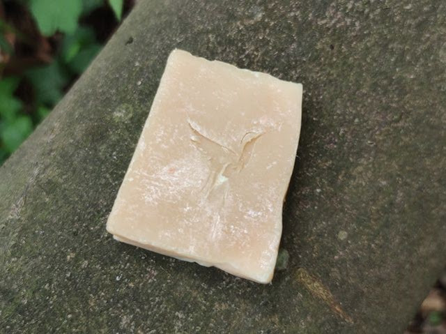 Sa composition: Huiles bio saponifiées d'Olive, coco, ricin, beurre de cacao, eau, glycérine naturelle, argile blanche, son d'avoine bio, curcuma bio, graines de pavot bio, huile essentielle de Litsée citronnée bio issus de l'agriculture biologique.